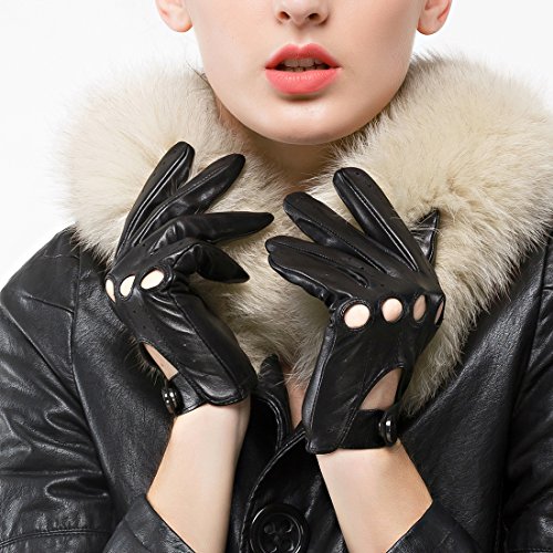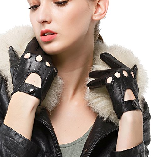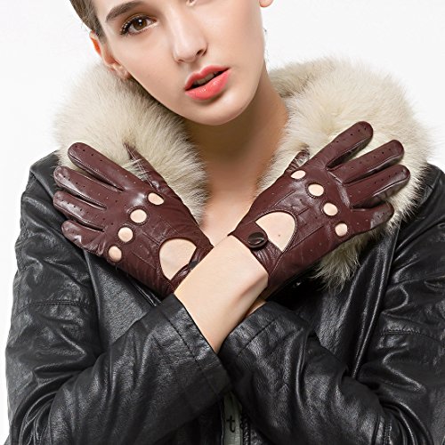 Nappaglo Damen Lederhandschuhe fur fahren Touchscreen klassische Lammfell Vollfinger Motorrad Ungefuttert Handschuhe
