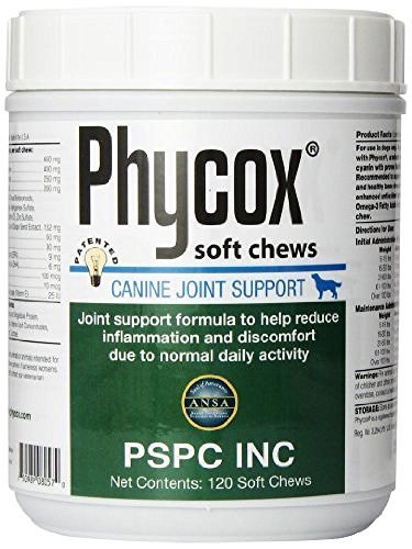 -. Binding : Misc. -. Brand : PhyCox -. EAN : 0802703124928 -. Feature : Helps to support joint mobility and healthy bone structure / For Dogs only / Antioxidant protection and Omega 3 Fatty Acids / Convenient and tasty soft chew formula -. Label : United States -. Manufacturer : United States -. PackageQuantity : 1 -. ProductGroup : Pet Products -. ProductTypeName : PET_SUPPLIES -. Publisher : United States -. Studio : United States -. Title : Vitamins & Supplements PhyCox Soft Chews, 120 ct, New -. UPC : 719279585070