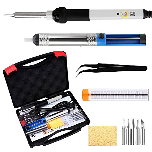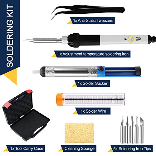 Magento's Superb 12 Pieces Set Adjustable Temperature Soldering Iron Kit 60w - 110v - Best for Small Electric Work, Jewellery and Welding. 5 Bonus Tips in Various Sizes + Bonus Solder Wire + Stand].