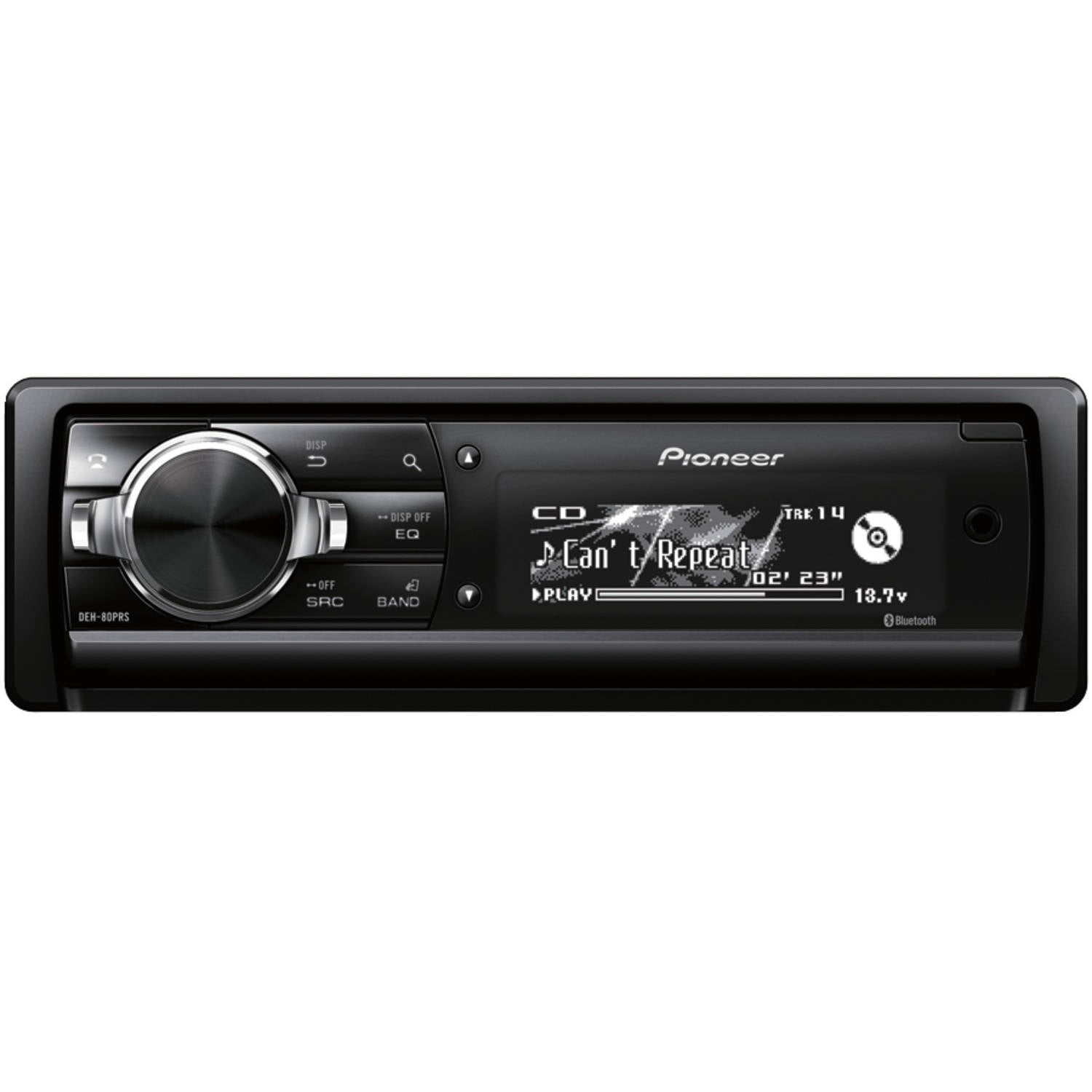 The Pioneer DEH-80PRS Single-Din In-Dash CD Receiver with Built-In Bluetooth and HD Radio features audiophile grade internal components and materials that are carefully selected to achieve Pioneers highest standards for the ultimate in sound quality. Pioneers exclusive sound field technologies including Auto EQ and Auto Time Alignment help optimize audio in ways that perfectly suit particular listening spaces and allow subtle manual control of settings. Versatile connectivity helps deliver exceptional sound quality from various digital devices. Pioneer DEH-80PRS Single-Din In-Dash CD Receiver with Built-In Bluetooth and HD Radio: