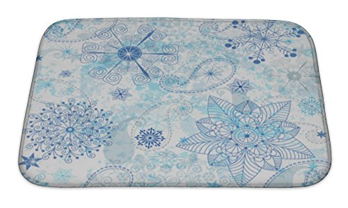 Gear New Christmas White Blue Pattern Bath Rug Mat No Slip Microfiber Memory Foam