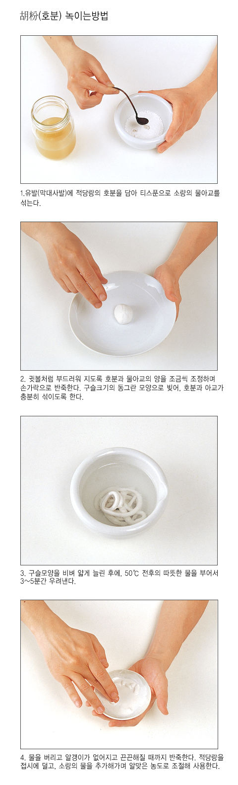 풍화시킨 조개껍질의 미세한 분말이 주원료인 부드럽고 포근한 백색안료이다. 타 물감과의 혼색이 잘 되고 피복력이 강하여 밑칠용으로도 애용되는 중요한 원료이다. 순백도와 입자의 크기에 따라 제품등급이 달라지며 등급별로 다른 용도를 보인다.