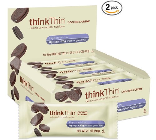thinkThin Cookies and Crème 10 Count Protein Bars, 2 Pack