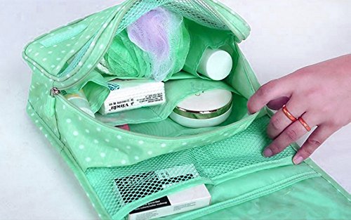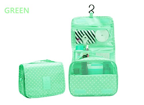 SUSOKI Waterproof Travel Hanging Organizer Bag Multifunction Cosmetic Bag Portable Makeup Pouch Toiletry Bag Bathroom Storage with Hanging Hookwith Hanging Hook(Polka Dot, Green)