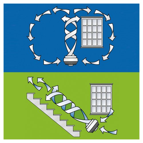 -. Feature : Patentiere Vortex-Technologie für ein sensationell angenehmes Raumklima / Gleichmäßige Luftzirkulation im gesamten Raum / Ganzjährig einsetzbar / 3-Stufen-Regulierung / Reichweite des Luftstroms 21 m