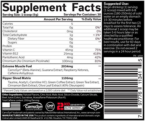 Cobra Labs The Ripper 30 Servings Weight Loss Supplement, Cherry Limeade, 0.33 Pound