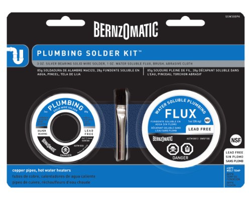 - Kit includes: 3 oz. Lead-free Silver bearing solid wire solder, 1 oz. Lead-free water soluble plumbing flux, 120 grit sand cloth for surface preparation, flux brush