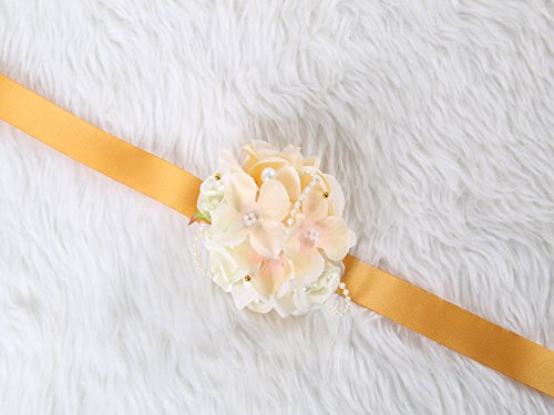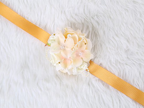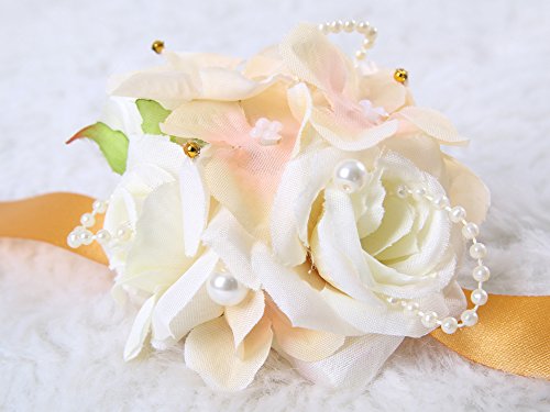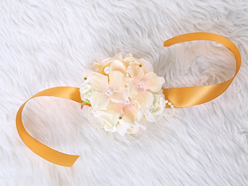 Bridesmaid Wedding Wrist Corsage Rose Flower Decor Ceremony Party (Gold)