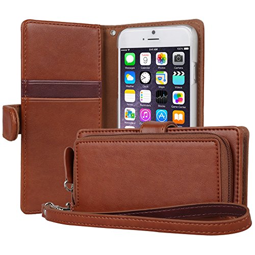 iPhone 6 Case, TORU [ZIP WALLET] iPhone 6S Wallet Case with [CARD SLOT] [ZIPPER POUCH] [WRISTLET] Premium Leather Flip Cover Case with Strap for Apple iPhone 6/6S - Purple