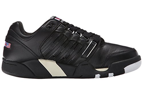 -. Binding : Apparel -. Brand : K-Swiss -. Color : Black/White/Whisper White -. Department : mens -. Feature : Stylish shoes features quality leather upper with tonal stitching, classic details that include signature 5- stripe logo details at sides, cotton laces, and metal eyelets / Smooth leather lining and insole for ultra soft cushioning / Synthetic outsole for traction and flexibility / Weight 13 oz -. Model : 03368 -. ProductGroup : Shoes -. ProductTypeName : SHOES -. Size : varies -. Title : K-Swiss 03368 Mens SI-18 International Shoes