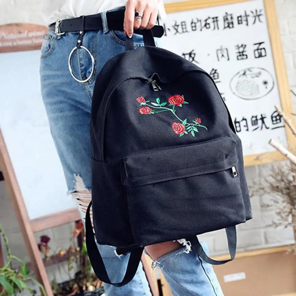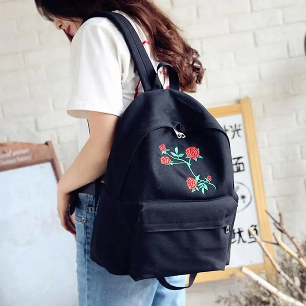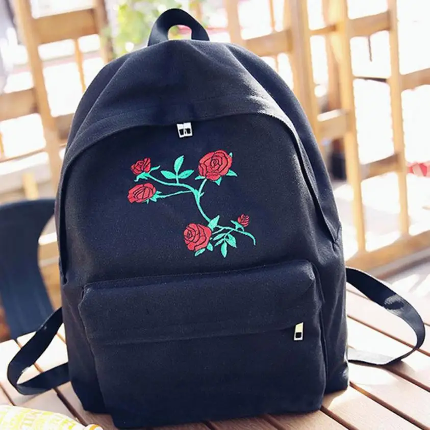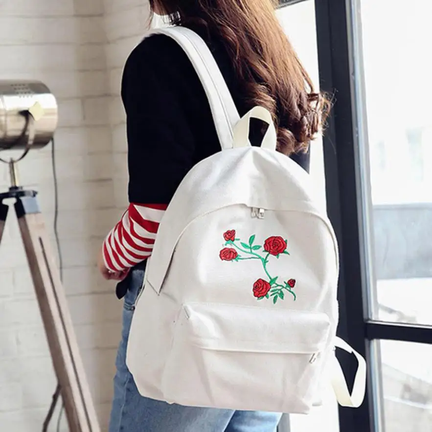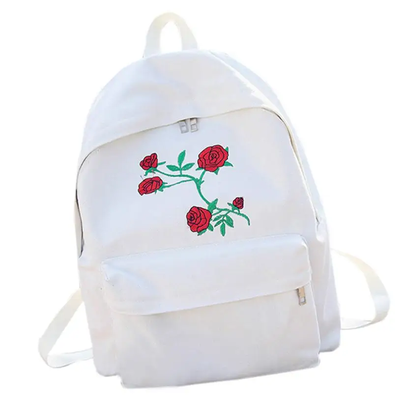 Model Number:Women Girls Canvas Embroidery Flowers School Bag Travel Backpack Bag