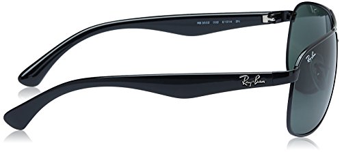 Ray-Ban Sunglasses, style RB3502 is a rx-able rectangular metal aviator with a double bridge. The RB3502 features adjustable nose pads and plastic temples for maximum comfort. The Ray-Ban logo is engraved on the temples. Ray-Ban Sunglasses have scratch/impact-resistant lenses.