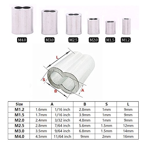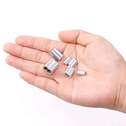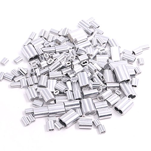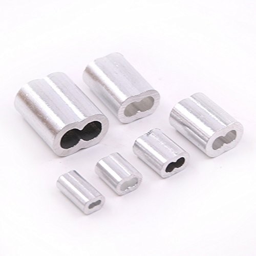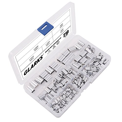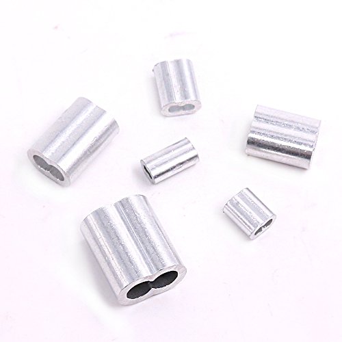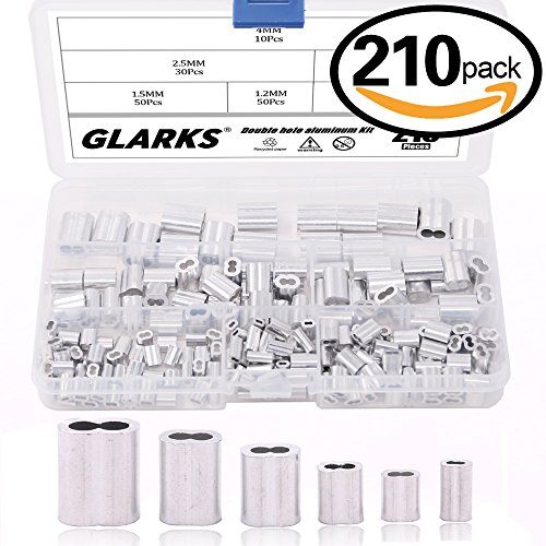 Glarks 210Pcs 6 Size Aluminum Double Barrel Ferrule Crimping Loop Sleeve for Wire Rope and Cable Line End Assortment Kit