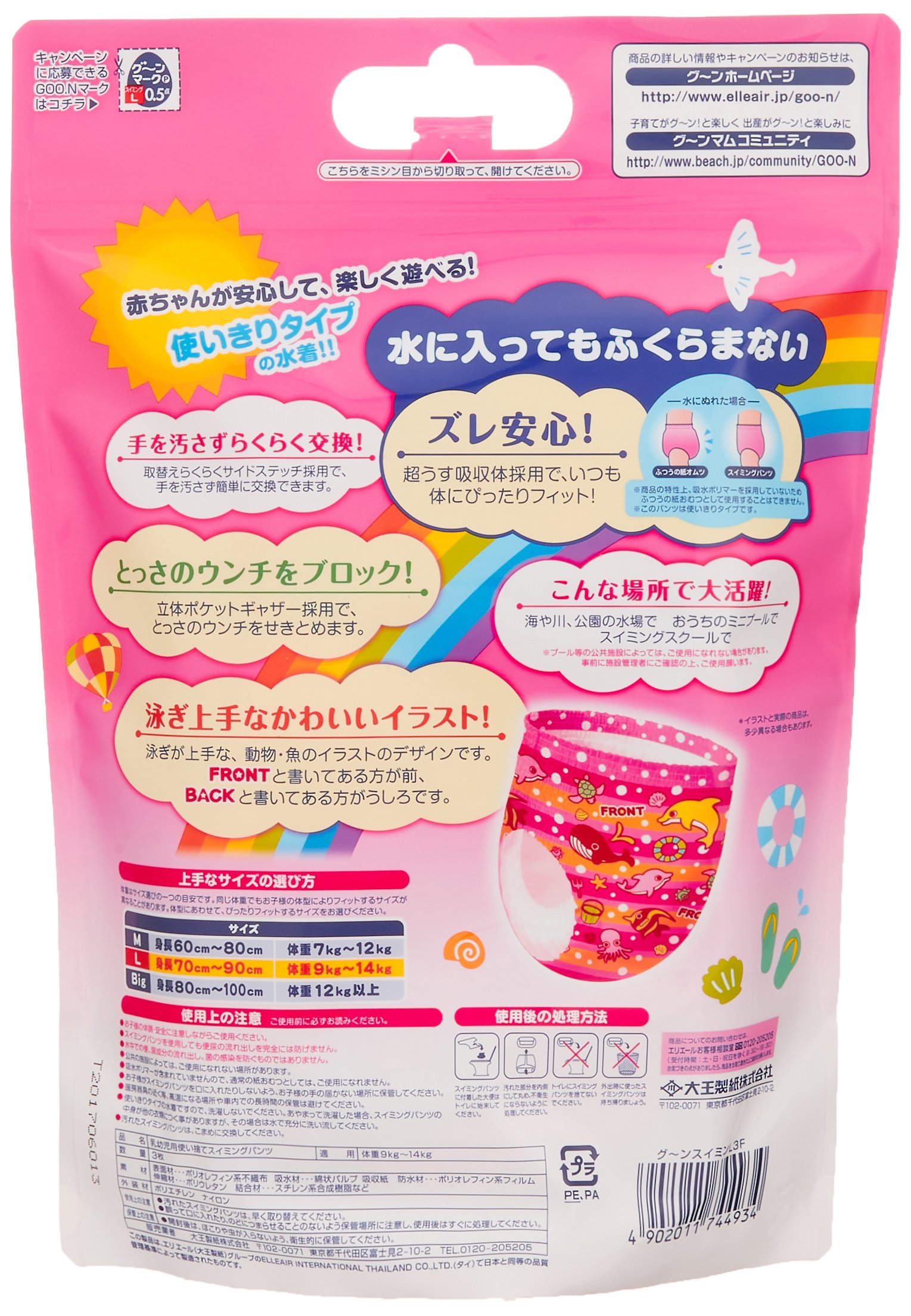 Unlike disposable diapers, it does not swell even if wet with water, so it is easy to move without floating while playing with water.