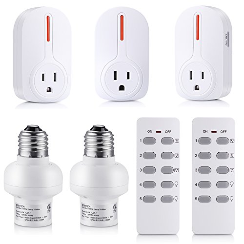 Bestten Wireless Remote Control Outlet Switch and Light Socket Combo Set (3 Electrical Outlets, 2 Lamp Holders, 2 Remotes), Home Automation Set
