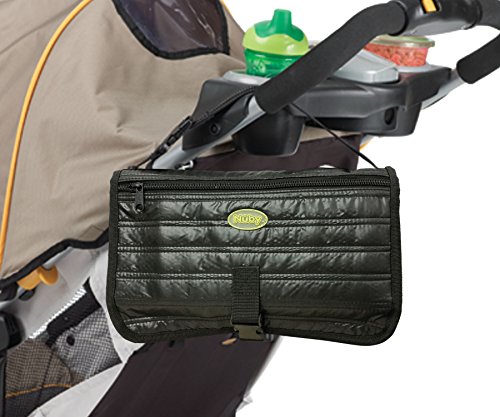• Quick disconnect clip in strap to fasten around stroller handle