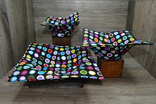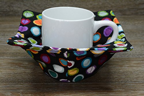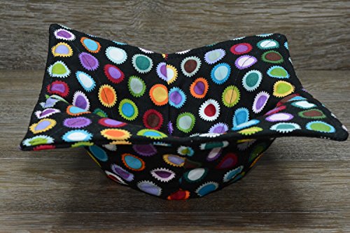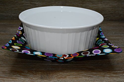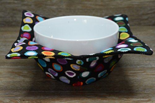Product Description Microwave cozy set includes 1 small bowl cozy (Approx 6.5" sq), 1 medium bowl cozy (Approx 8" sq), 1 dinner plate cozy (Approx 10" sq.) The dinner plate cozy can also be used for round casserole dishes and the small size is great for coffee mugs! These microwave cozies are the perfect solution to handling super-hot dishes. Cooking and reheating food in a dish cozy makes life so much easier! Place your microwaveable dish inside the bowl cozy and put the whole thing in the microwave to heat. To take the bowl out, you simply grab the corners of the cozy. We found that our kids can now get their dishes out of the microwave safely. Cozies will also protect your fingers from the cold when holding a bowl of ice cream and are great for protecting your table. You can also use a cozy placed on top the dish you are microwaving to help steam food. MATERIALS: * 100% cotton fabric * 2 layers of 100% cotton batting * 100% cotton thread Please be advised: Bowl cozies must only be used in microwaves with a rotating base. To avoid scorching or burning, please make sure cozy freely rotates in your microwave. Never leave microwave unattended. Make sure cozy is clean with no pieces of food attached. Do not microwave cozy for more than three minutes. Cozies can be machine washed on delicate cycle. Reshape and allow to air dry for best results. Please let us know if this is a gift, and we will ship without a packing slip enclosed! #bowlcozy #microwaveable #handmadeatamazon #hot4handmade #buyhandmade 0