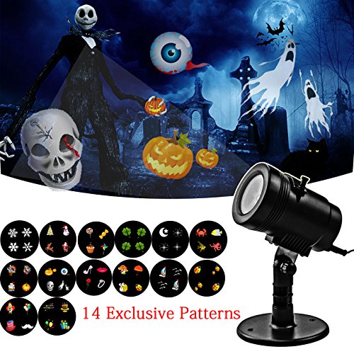 - PERFECT FOR ALL OCCASIONS --- Various Patterns for decorating your place easily for an instant atmosphere, ideal for interior and exterior walls,landscapes,dance floors and more Celebration Series Projection Light Designs for every occasion! It also could be your Halloween atmosphere maker with its cool lighting effect!