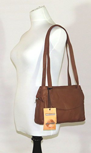 -. Brand : Paul & Taylor -. Color : brown -. Department : womens -. Feature : Made from high quality soft genuine leather. Handy bag with a lot of compartments and pockets. Easy to organize. / Size of bag: 11" x 7.5" x 3.5". Strap drop: approx. 13". / Convenient large rear open pocket for your keys etc. Additional large front open pocket and flap pocket with magnetic closure for extra storage. This little purse also has a small zipper pocket on the side for small items. / 2 separate main compartments are fully lined with nice fabric. One compartment has velcro closure pocket and open pocket inside, the other has zip wall pocket for your essentials. / Quality never goes out of style. This handbag is made of high quality genuine leather and excellent craftsmanship. Great gift idea for your friends and family. Perfect gift for mothers. -. PackageQuantity : 1 -. ProductGroup : Shoes -. ProductTypeName : HANDBAG -. Size : Medium -. Title : Paul & Taylor Women Leather Handbag Purse 5413