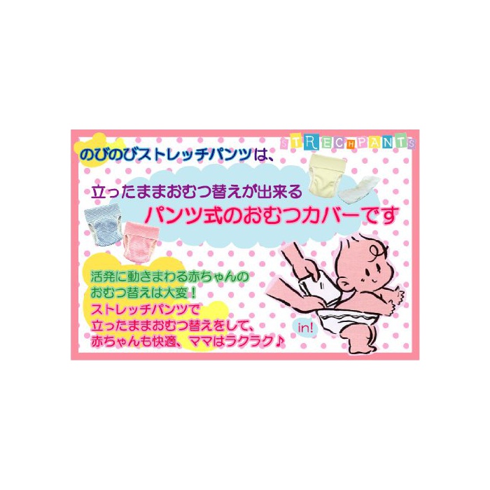 스트레치 팬츠는 팬츠식 기저귀 커버입니다.스트레치 소재에 늘어남이 좋고, 섰던 채로 기저귀를 바꿀 수 있습니다♪
