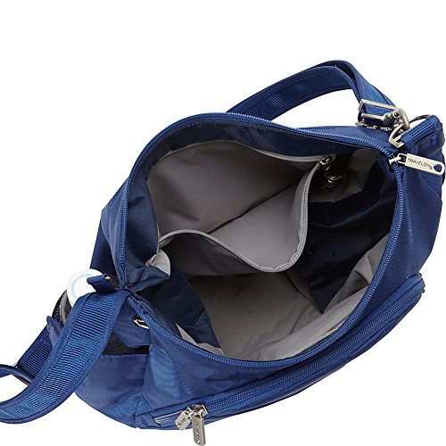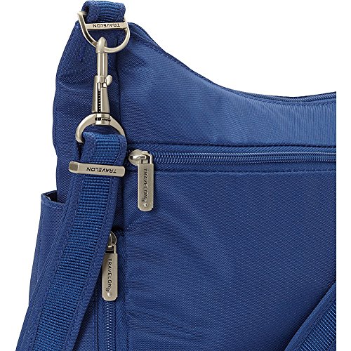-. Binding : Apparel -. Brand : Travelon -. Department : unisex-adult -. Feature : Slash-proof locking main and front compartments, 2 mesh expansion pockets hold water bottle and umbrella, Removable LED light / Cut-proof shoulder strap attaches to chair or post / RFID blocking card slots / Front slash pocket and zip rear pocket / 14 x 10 x 4 / Locking main and front compartments / Slash-proof construction / Adjustable, cut-proof shoulder strap attaches to post or chair / Front slash pocket and rear zip pocket. 2 mesh expansion pockets hold water bottle and umbrella. Removable led light. -. Label : Travelon -. Manufacturer : Travelon -. PackageQuantity : 1 -. ProductGroup : Apparel -. ProductTypeName : LUGGAGE -. Publisher : Travelon -. Studio : Travelon -. Title : Travelon Anti-Theft Classic Crossbody Bucket Bag This lightweight cross-body bucket bag is very comfortable to wear, it offers a slash proof strap that can be attached to a post or table with ease. Great size for carrying everyday items as well as a small iPad or reader. The front and main locking compartments offer slash proof construction for peace of mind along with the RFID reader blocking card slots. The outside mesh panels easily store a water bottle and umbrella. For more than 35 years, Travelon has been making travel easier and safer with products that provide protection, peace-of-mind, safety, security and organization. Travelon's Anti-Theft Cross body and travel bags protect from pickpockets and thieves and are customer top rated. Classic silhouettes in soft fabrics provide great function and fashion.