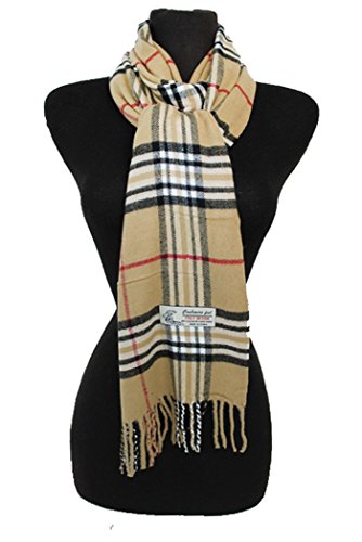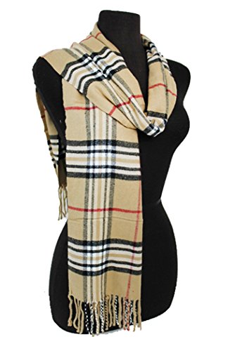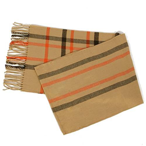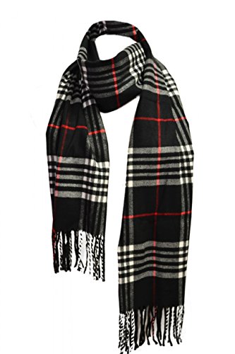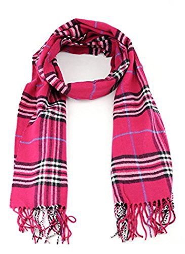 Fashion Secret Soft Checked Plaid Cashmere Feel with Twisted Fringe Scarf Wrap Shawl