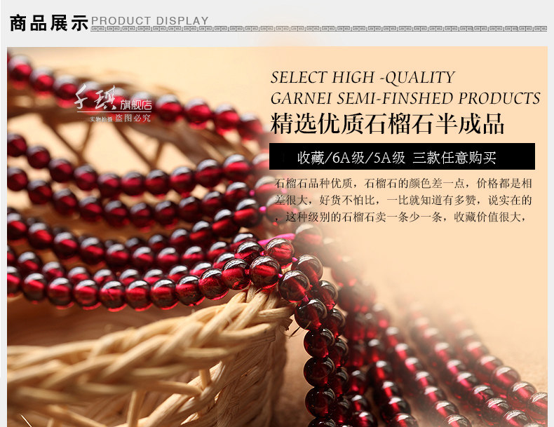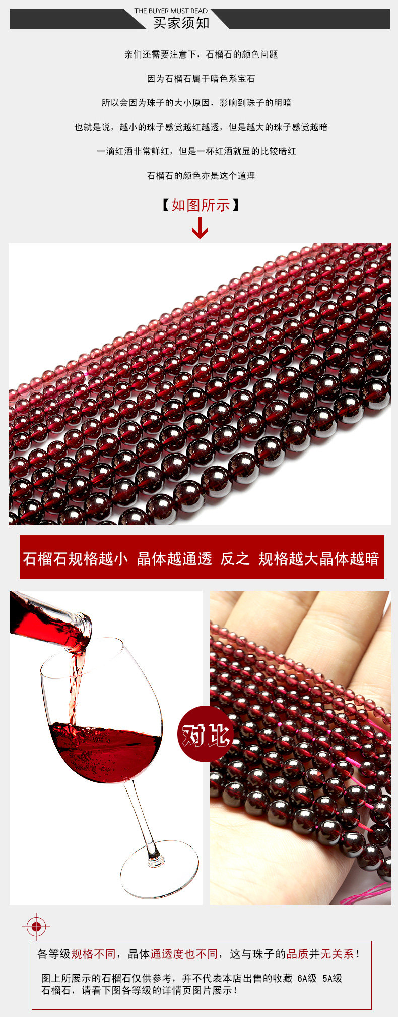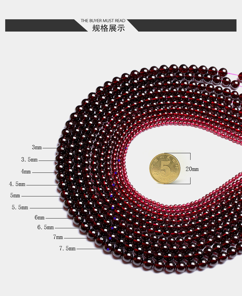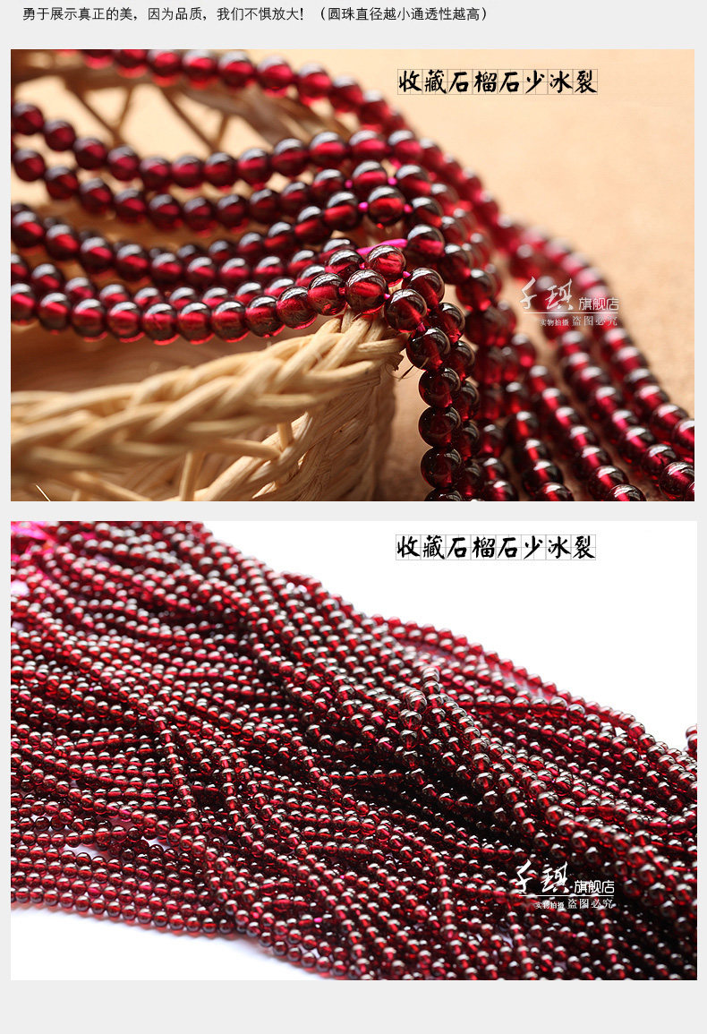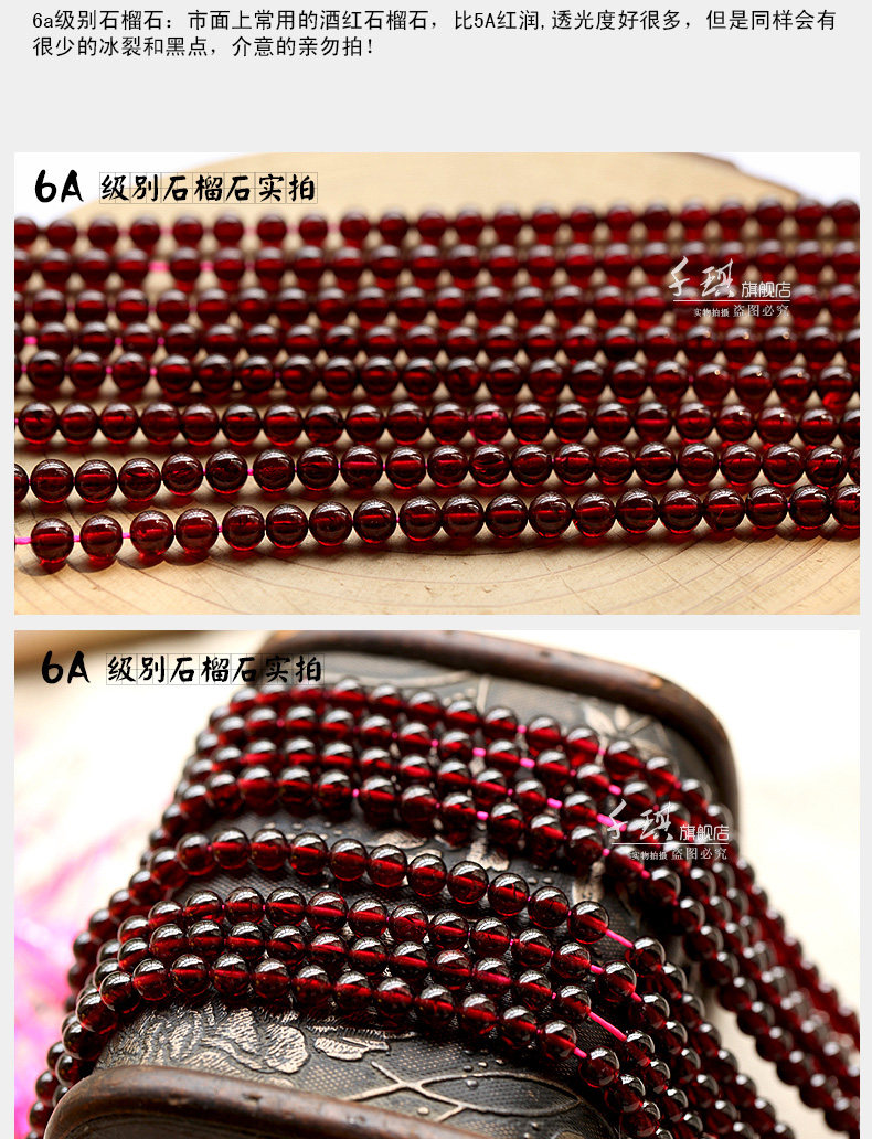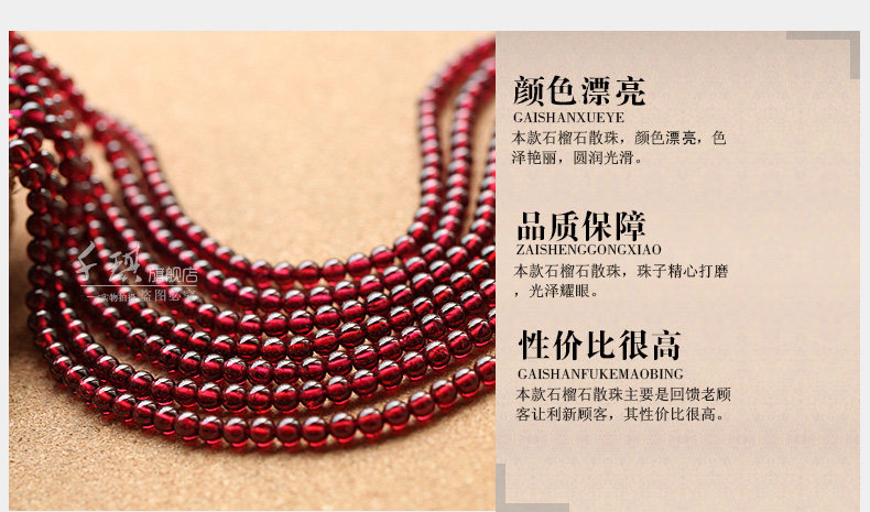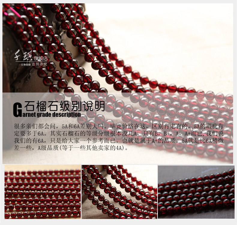 千琪6A酒红石榴石散珠子半成品水晶配件材料DIY饰品女手链4/5/6mm