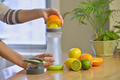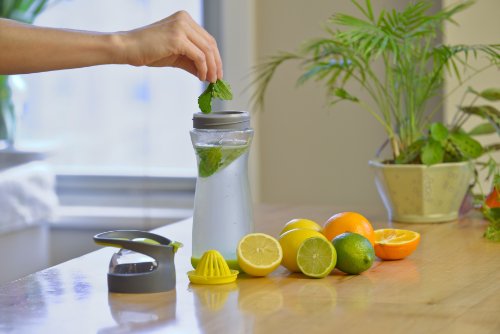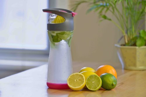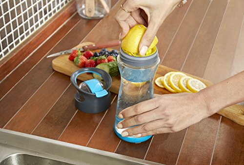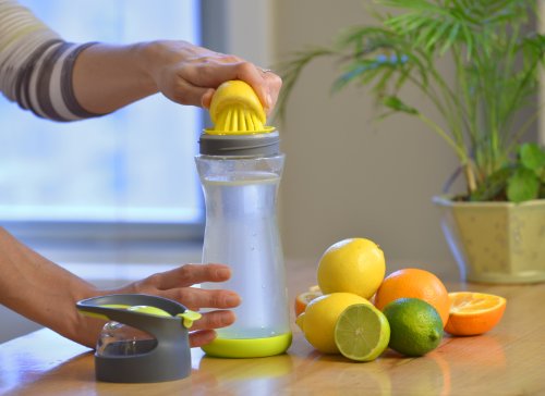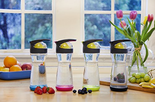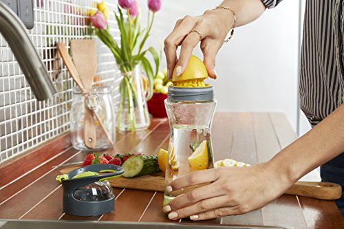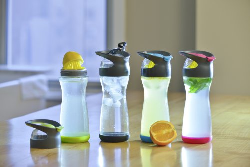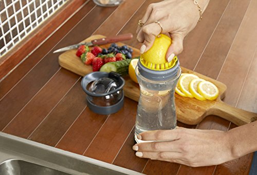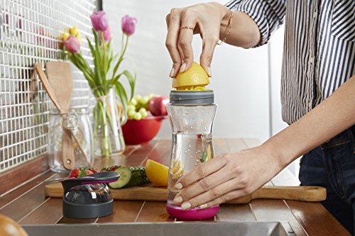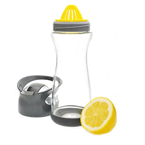 Studio : Full Circle Home Publisher : Full Circle Home Binding : Kitchen Product Description Full Circle Lemon Water On-the-Go Bottle. When life gives you lemons, squeeze 'em, mix 'em with water, and chug away. This is a great way to make your eight daily servings more palatable, without the added sugar, cost and waste of prepackaged beverages. Our built-in lemon reamer makes it easy to add flavor, and our glass container keeps your water healthier and better tasting. BPA-free, no leaching, no aluminum taste. Comes with booklet with unique flavor infusion recipes! Comes in four colors. Materials: glass, Tritan(tm), plastic, silicone 0