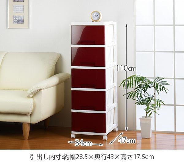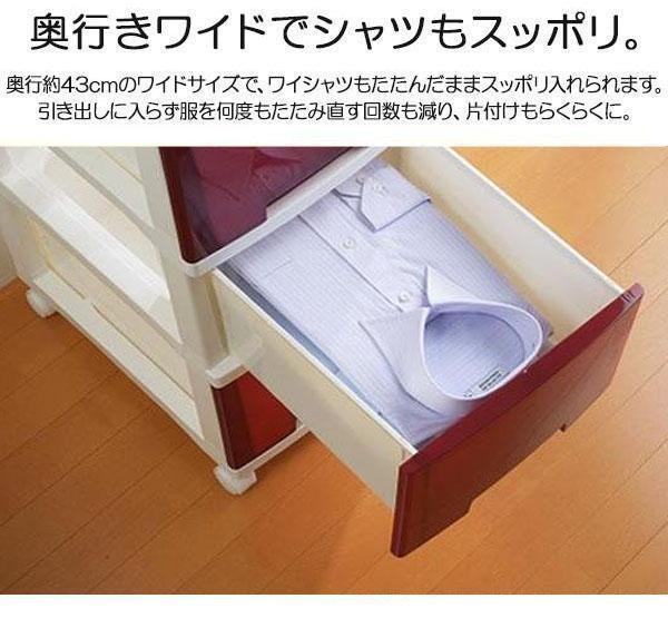 | ちょっとしたインテリアにもなる、おしゃれなチェスト!!奥行が広めなので、たたんだYシャツもすっぽり収納いただけます。工具不要で組み立てができます。キャスター付きだからお掃除する時も便利です♪ |