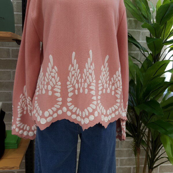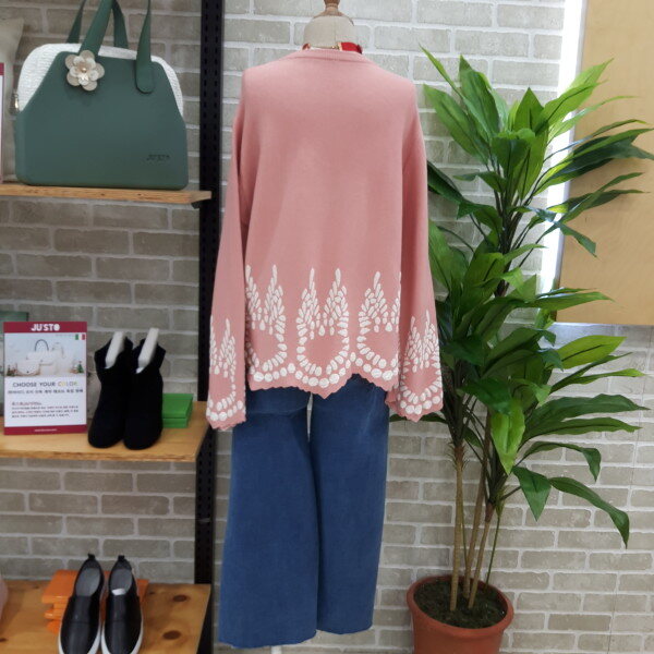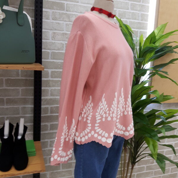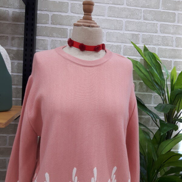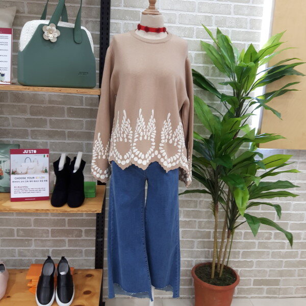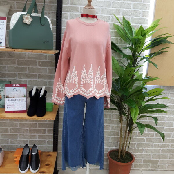 라운드형의니트입니다소매부분과 밑단부분이 포인트로 귀여운 스타일의 니트입니다