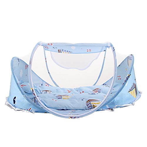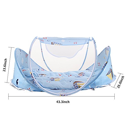SINOTOP Baby travel bed with mosquito net is such a great tool for travel and play outside.Not only can protect your baby from mosquito bites, sun, wind, dusts and insects bites, but also the soft Baby travel bed is portable, lightweight and easy to fold up. How wonderful gift for your baby! Your baby will like baby travel bed crib mosquito.3pcs Portable Baby travel bed with Mosquito Net is a great gift for infant toddler baby in holidays or birthdays! After one years old, the baby begins to enter the space-sensitive period and starts to like the bottom of the table or the big box. Like to stay alone in a space, like climbing high, like going up and down the stairs, like to open cabinets, pull drawers. Their behavior is building spatial intelligence. Advise parents not to bother them while they are alone.You'd better buy a baby travel bed for your baby. This small travel bed is the space for their independent play, which is very helpful for children to grasp the concept of space and develop their geometric ability in the future.Your baby will enjoy themselves in this small baby travel bed. Description: Product size (L x W x H):110.00x 65.00x 56.00 cm / 43.31x 25.59x22.05 inches Package size (L x W x H): 47.00x 59.00 x 6.00 cm / 18.5x 23.23x2.36 inches Weight: 0.95kg Content delivery: 1x Tent; 1 x Mattress; 1x Pillow About us: We offer a hassle-free, no questions asked refund or replacement guarantee if you don't love our Baby travel bed. We want every customer to be 100% satisfied. If you have any problem, Please don't hesitate to contact us. We will help you solve your problem as soon as possible. Best regard SINOTOP TEAM 0