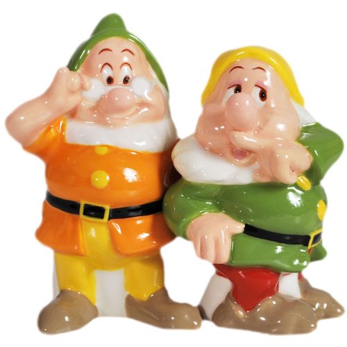 Westland Giftware Magnetic Ceramic Disney Snow White Doc and Sneezy Salt and Pepper Shaker Set, 3.75-Inch