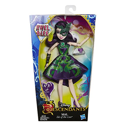 -. Feature : Disney Descendants doll inspired by Mal from Isle of the Lost / Imagine getting her ready for the Jewel-bilee ball / She comes wearing a dress adorned with her signature emerald-colored jewel / Look for other Disney Descendants Jewel-bilee dolls (each sold separately) / Includes doll, dress, mask, collar, purse, bracelet, and pair of shoes