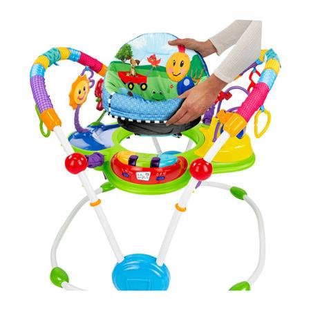 -. Brand : Comfort & Harmony -. EAN : 0731084396252 -. Feature : Recommended for a baby up to 25 lbs Secure support seat has added height and padding / Seat rotates 360 degrees to give baby full access to toys / 4 fun activity stations: piano that activates lights, classical melodies and language learning in English, French and Spanish / 5 height settings grow with baby Built-in toy tray is easy to clean Easy to clean seat pad / Lays flat for storage Wipe clean with damp cloth Requires 3 AA batteries (not included) -. Label : Comfort & Harmony -. Manufacturer : Comfort & Harmony -. MPN : z3 -. PackageQuantity : 1 -. PartNumber : z3 -. ProductGroup : Sports -. ProductTypeName : OUTDOOR_RECREATION_PRODUCT -. Publisher : Comfort & Harmony -. Size : 33.0 L x 29.0 W x 30.5 H -. Studio : Comfort & Harmony -. Title : Baby Einstein Neighborhood Friends Activity Jumper Special Edition and Seat Rotates 360 Degrees to Give Baby Full Access to Toys -. UPC : 731084396252