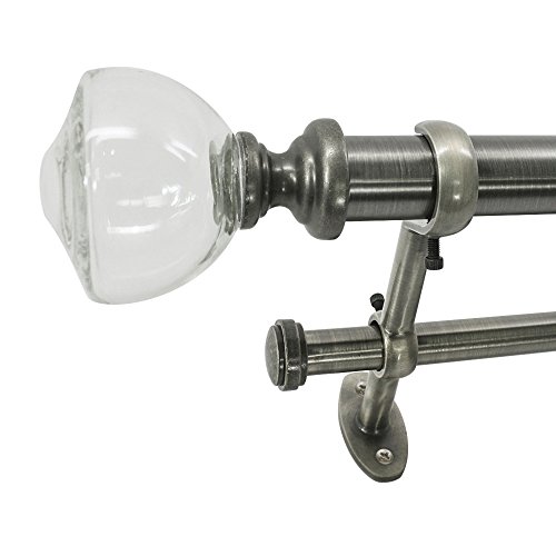 BEME INTERNATIONAL 22 PARK WEST 1-INCH GLASS URN TELESCOPING DOUBLE DRAPERY ROD SET, 18 TO 36-INCH, LIGHT PEWTER