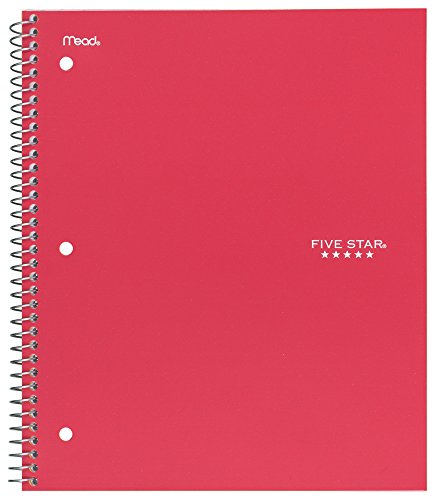 Lasts All Year. Guaranteed!* Keep notes organized and secure in this durable, 1 subject, wide ruled, 100 sheets, 3 hole punched, wirebound notebook. Water resistant covers protect them, and reinforced storage pockets help prevent tears. High quality paper resists ink bleed; 10.5 x 8 inch tear out sheet size. Spiral Lock wire helps prevent coil snags, and Neat Sheet perforated pages tear out easily. One Black, one Cobalt Blue and one Red notebook per 3 pack. 10.5 x 9.19 x .81 inches overall. *ACCO Brands will replace any Five Star notebook that is returned within one year from the date of purchase. The guarantee does not cover damage due to abuse. Contact ACCO Brands Consumer Affairs at www.mead.com for instructions.