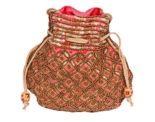 Indian sequence Potli Bag/ wedding purse/jewelery purse for girls & women (Base Color- Red)