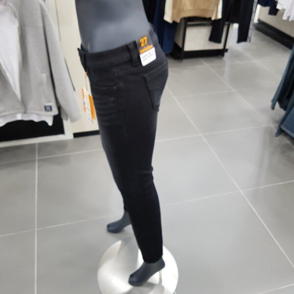 잠뱅이 여성 블랙 로프사 포인트 캣브러쉬 워싱 겨울 본딩 슬림핏 청바지 입니다.