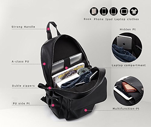 -. Feature : It is not heavy but not light. It is extremely soft. If feels like leather even though it is not. It definitely does not have the pleathery feel. It is also well cushioned for comfort while wearing so it won't dig into various parts of your body. / High Quality WaterProof PU:Good soft touching surface,anti-scratch,water-resistant,and dirt-proof, it is a classy, fashion, chic looking, unisex large vintage backpack that would be suitable for anyone of any gender / A-class metal zipper, smooth using, durable,Strong bartack: force reinforcement parts avoiding seam split, enable carrying more things you want / "thicken,comfortable shoulder straps; the shoulder straps are very strong which could carry a pretty heavy load in this backpack without concern that the weight would strain the shoulder straps " / Size: 17.7" x 11.4"x6.4"inch, Capacity:20L, Weight:2.0lbs (0.9kg); The laptop pocket will fits for notebook up to 14-inch perfectly.There are a lots of pockets for you to classified your items, such as ipad, books,pens,clothes,towel,laptop,macbook, powerbank 14"" laptop computer,power bank,umbrellas in it