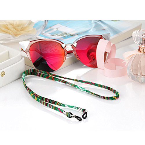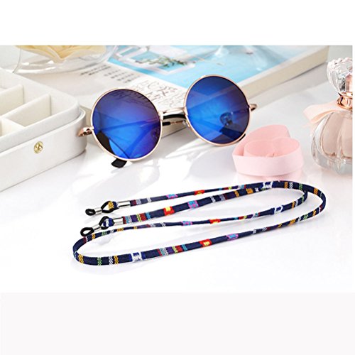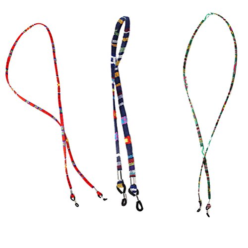 Features - Color: Blue andamp; Green andamp; Red. - Material: Cotton. - Size: 70cm / 27inch in length. - Made of natural cotton, comfortable and soft to wear, not easy to break, can last a long using life. - These cords would help to prevent unwanted fall of your glasses thus to protect them from getting damaged or accidental loss. - Each of the strap has a rubber holder on one end, you can tighten or loosen the metal rings to adjust the holders and make them suitable for your eyeglass frames/ arms. - These eyeglasses cord holders fit for myopia, reading glasses, sunglasses, etc. unisex style eyeglass retainer is good for indoor and outdoor activities.