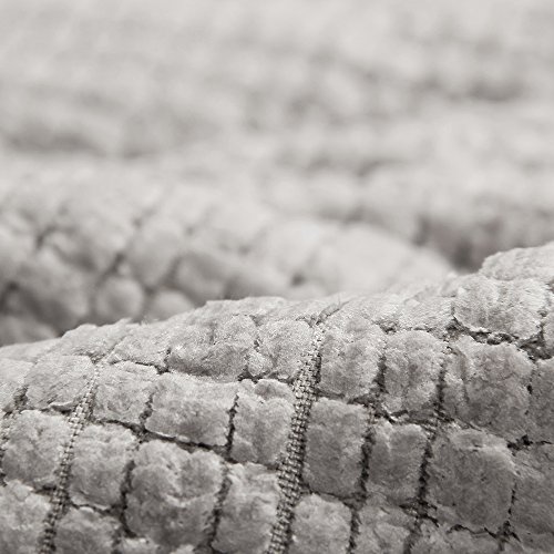 - Made of microfiber chenille,won't slide over our bathroom floor when we step on it.Our bath mat is plush and fluffy,so it's comfy and soft to stand on bare feet