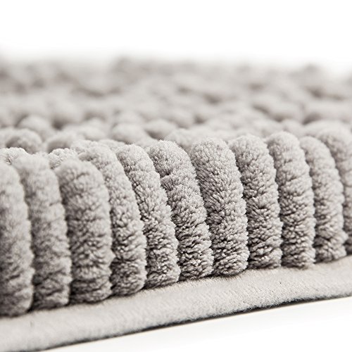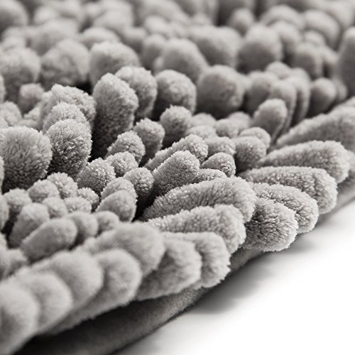 Chenille Microfiber Bath Rugs for Bathroom,Rosoz Non Slip Plush Shaggy Bath Floor Mat,Machine Washable Bathtub Toilet Rug,Absorbent Fast Bathroom Shower Rug,17"x27",Gray