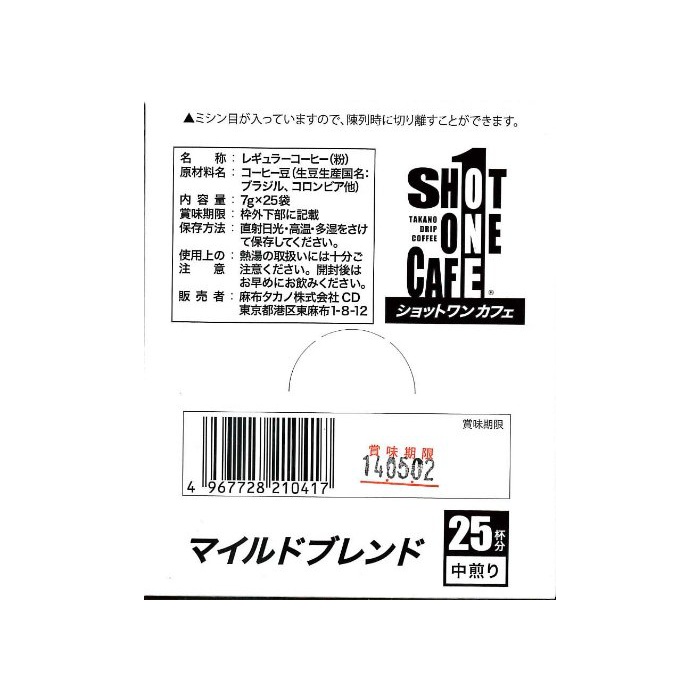 원본상품명: ショットワンカフェ マイルドブレンド 25袋