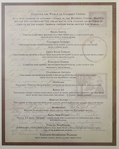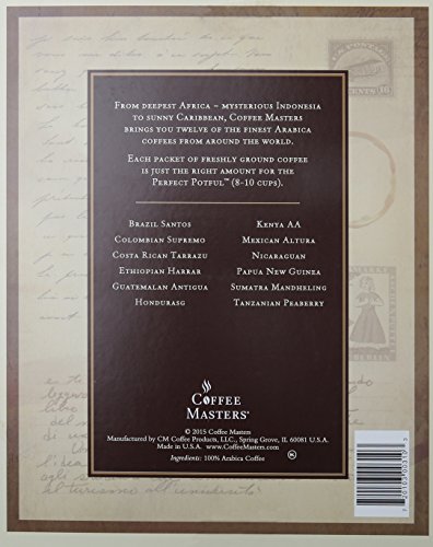 Studio : Coffee Masters Publisher : Coffee Masters Binding : Misc. Product Description Coffee Masters buys, roasts, and markets its' high quality arabica coffee under the Coffee Masters name. We purchase only from the top 3% of the highest quality arabica grown. Because of our outstanding quality and consistency, we have grown to become the largest specialty coffee roaster in the Midwest. All of our coffees are certified Kosher. Unique to Coffee Masters, our "book" design gifts offer an elegant and colorful shelf presentation with cover graphics 0