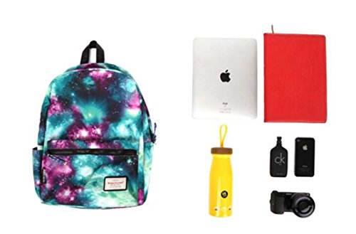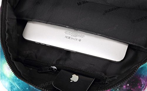-. Feature : Material: Nylon / Capacity: can hold your 15" laptop, wallet, cellphone, books, clothes, umbrella and etc / Features: both for female and male, unique galaxy pattern, cool and fabulous / Enough storage to keep your stuff in order, including a laptop compartment / Approx Size: 12.6 in(L)X 6.7 in(W)X 16.5 in(H)