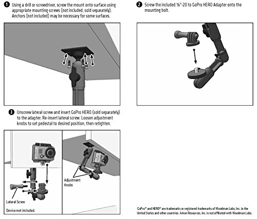 -. Binding : Electronics -. Brand : Arkon -. Color : Black -. EAN : 0047407990060 -. Feature : Fits all models of GoPro HERO camera / For mounting a GoPro to a wall or other flat surface / Multi angle mount arm features three adjustment knobs for easy positioning / Use mount to live stream with GoPro on Periscope / 2 year limited warranty -. Label : Arkon Resources Inc. -. Manufacturer : Arkon Resources Inc. -. Model : GPHD006 -. MPN : GPHD006 -. PackageQuantity : 1 -. PartNumber : GPHD006 -. ProductGroup : Photography -. ProductTypeName : CAMERA_OTHER_ACCESSORIES -. Publisher : Arkon Resources Inc. -. Studio : Arkon Resources Inc. -. Title : Arkon Heavy Duty Adjustable Wall Mount for GoPro HERO Action Cameras -. UPC : 047407990060