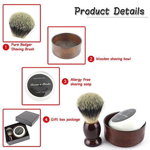 DESIGN: Noble and high quality life seeker's gift from us. Shaving tool set ensures men a nice day with confidence.100% pure badger hair which is soft and gentle to your skin. Nice touching feeling and hard to break.
