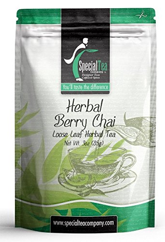 -. Binding : Grocery -. Brand : Special Tea -. EAN : 0852667689216 -. Feature : Loose Leaf Tea / Makes approximately 40 cups of tea / Each packet is hand packed in the USA. / Premium tea leaves have all their essential oils intact, so the flavor, quality and health benefits are maintained. -. Label : Special Tea -. Manufacturer : Special Tea -. NumberOfItems : 1 -. PackageQuantity : 1 -. ProductGroup : Grocery -. ProductTypeName : GROCERY -. PublicationDate : 2014-06-29 -. Publisher : Special Tea -. ReleaseDate : 2014-06-29 -. Size : 3 Ounce -. Studio : Special Tea -. Title : Special Tea Herbal Berry Chai, 3 Ounce -. UPC : 852667689216