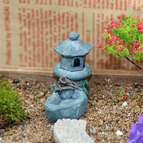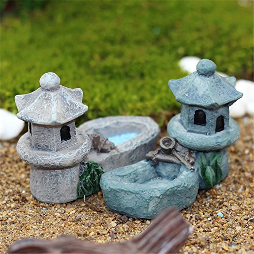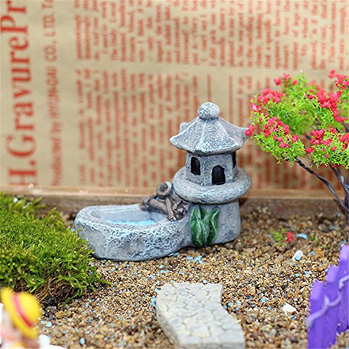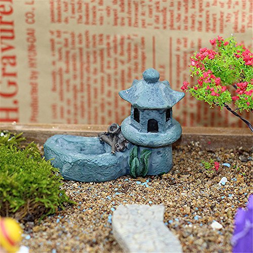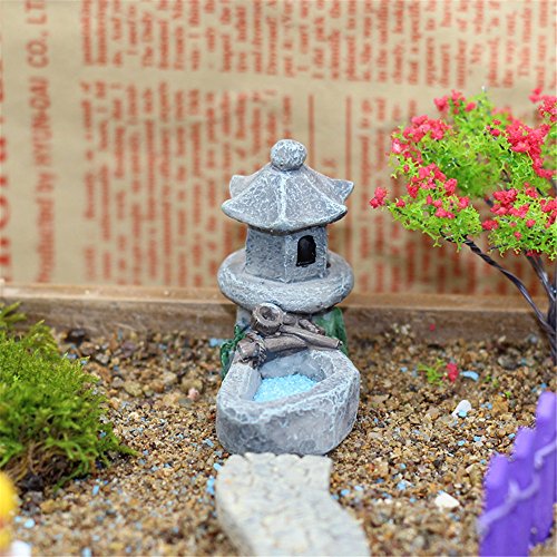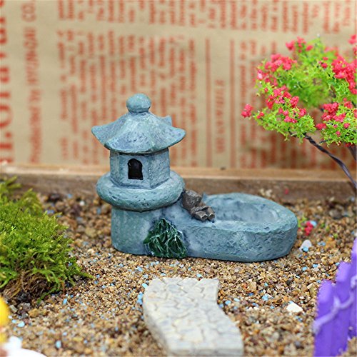 Danmu Mini Resin Pavilion with A Small Pond Miniature House Fairy Garden Micro Landscape Home Garden Decoration Plant Pots Bonsai Craft Decor