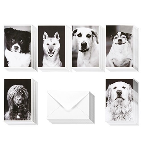 36 Pack All Occasion Assorted Blank Note Cards Greeting Card Bulk Box Set - Compawssion Adorable Rescue Dog Pictures Black and White Designs - Notecards with Envelopes Included 4 x 6 inches